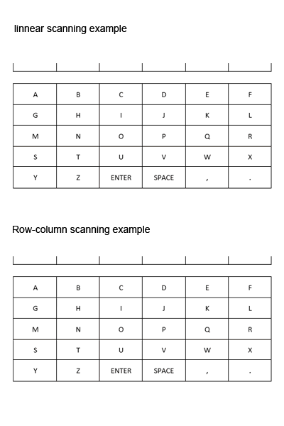 - Row-column scanning - the highlighter moves by row then by column.