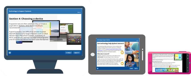 CALL has developed a series of professional learning modules for you to study at your leisure. The focus of each module is how technology can help learners with additional support needs, for example, pupils who experience literacy difficulties arising from dyslexia.