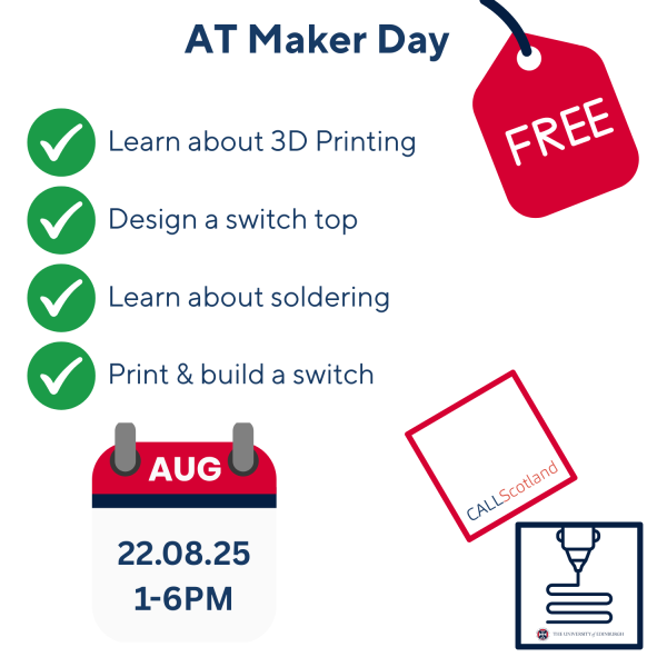 If you support children and young people who use Assistive Technologies like switches, or you’re intrigued by the possibilities of 3D printing, then we’d love for you to join us for our very first CALL Scotland Maker Day, hosted at the University of Edinburgh.