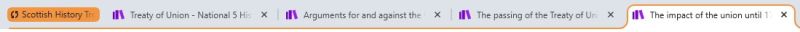 Within each of the 'curriculum groups' there are additional tabs for each subject, e.g., Treaty of Union - Worsening relations with England, Arguments for and against union, TheTreat of Union and The impact of union to 1715.