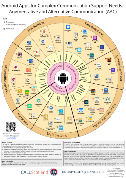 This 'wheel' of apps provides a categorised guide to Android apps for individuals with complex communication support needs, who use or may benefit from Augmentative and Alternative Communication (AAC).