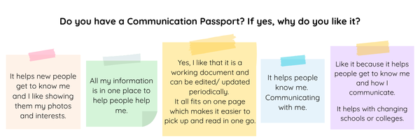 Common themes from their responses were that Communication Passports helped people get to know them and how to support them.